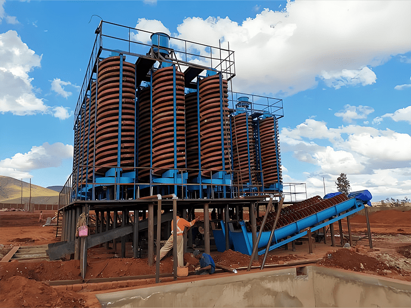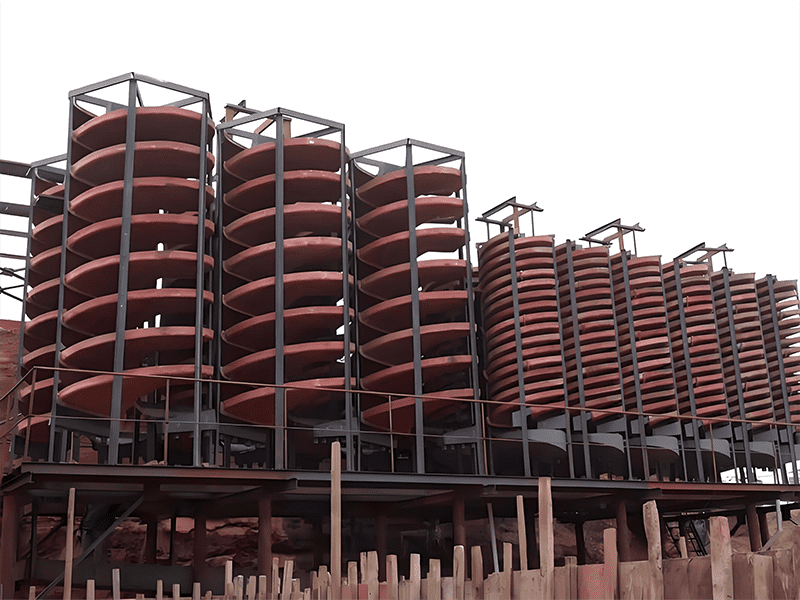 螺旋溜槽是一种重选设备,利用矿浆在螺旋回转中产生的离心力实现轻重矿物的分选。矿浆通过给矿槽均匀给入,在螺旋槽面上进行分选,尾端阀块式截取槽将产品按品位分成三种。通过调节阀块位置改变截取宽度,产品集聚斗导出。螺旋溜槽结构简单,无需动力,适用于细微粒物料选别,具有高回收率和分选准确的优势。